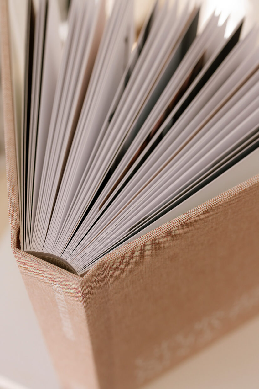 I design each album personally with a storytelling approach, telling a little about each part of your day. As part of the design process, you are given access to the online design to provide three rounds of feedback so you are super happy with the finished product before sending it off to be printed and hand bound.