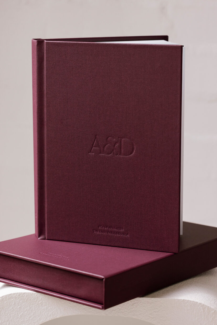 An exquisite keepsake from your wedding day. Beautifully presented on super thick museum quality matte photo paper using vivid archival ink, with your choice of leather, velvet or cloth and a personalised emboss.
